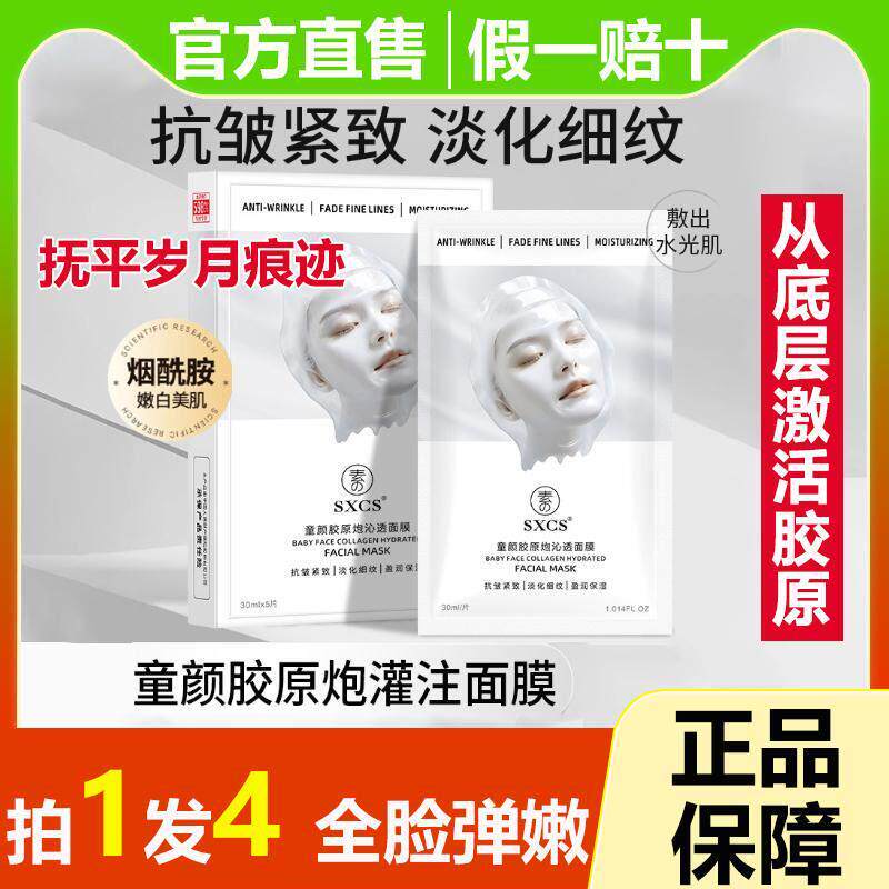 童颜胶原蛋白灌注面膜补水保湿紧致抗皱淡化细纹提拉紧致正品官方