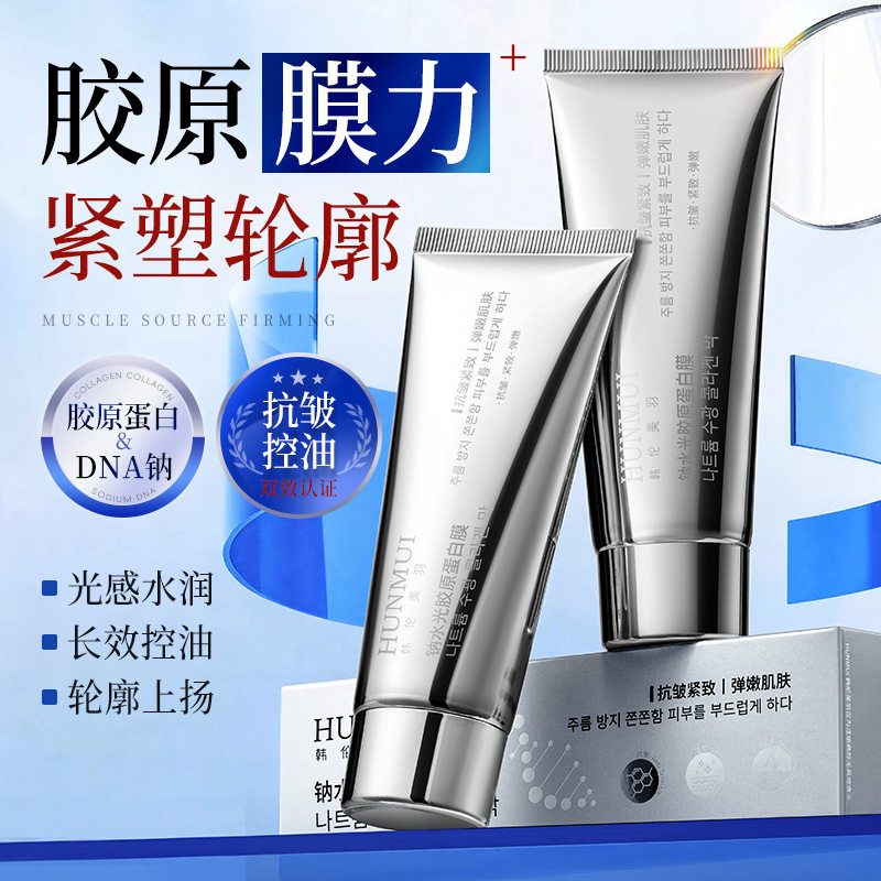 韩伦美羽钠水光胶原蛋白膜面膜控油保湿发光人皮面膜抗皱涂抹面膜