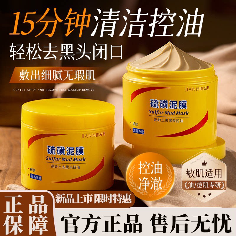 正品国货肌安妮硫磺高岭土控油清洁去祛黑头泥膜净肤涂抹面膜泥