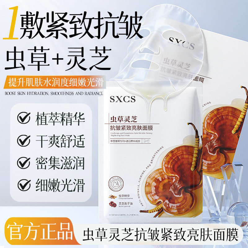 虫草灵芝抗皱紧致亮肤面膜补水保湿提亮肤色改善干燥肌肤细腻光滑
