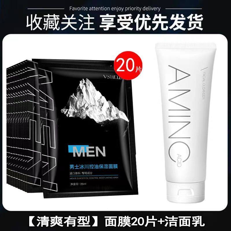 男士专用冰川面膜贴控油补水保湿提亮嫩白淡化痘印收缩毛孔