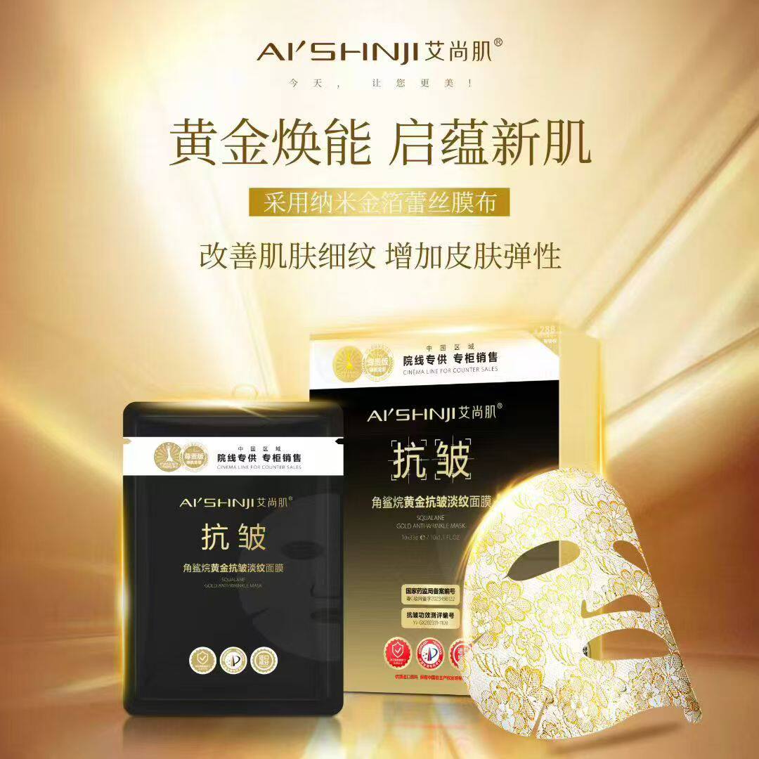 艾尚肌角鲨烷黄金抗皱淡纹面膜10片一盒保湿抗皱院线贴片面膜正品