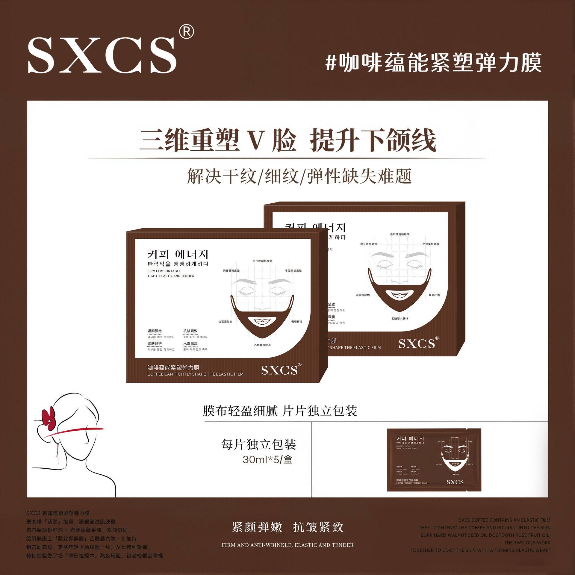 SXCS咖啡蕴能紧塑弹力提拉紧致抗皱保湿淡化暗沉干纹滋润V脸面膜