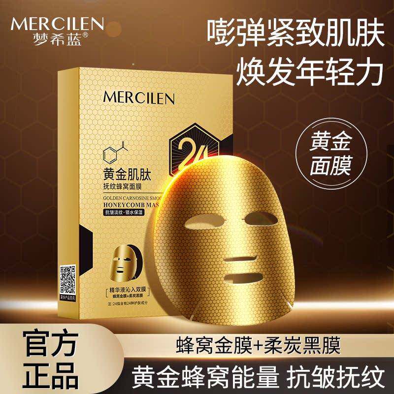 【六盒】保湿 紧致 抗皱梦希蓝黄金肌肽抚纹蜂窝面膜