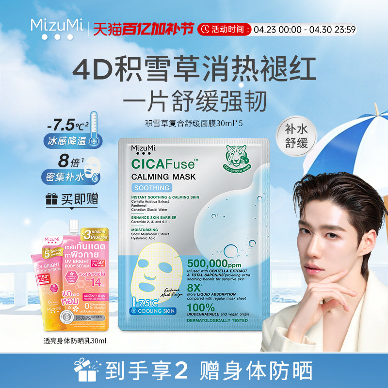 【PP同款】MizuMi满水美泰国积雪草舒缓补水保湿复合面膜30ml*5片
