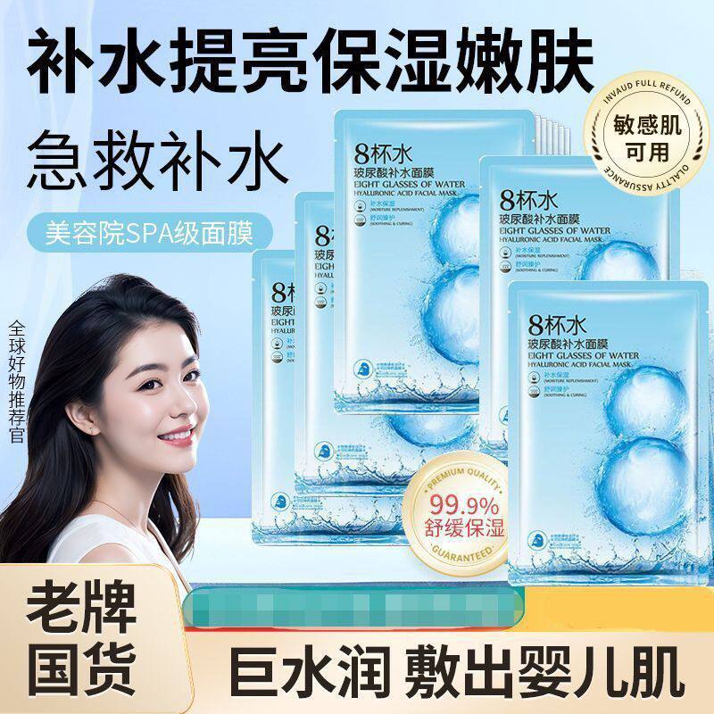 正品50片八杯水面膜补水保湿提亮滋润清洁收缩毛孔控油平衡水油