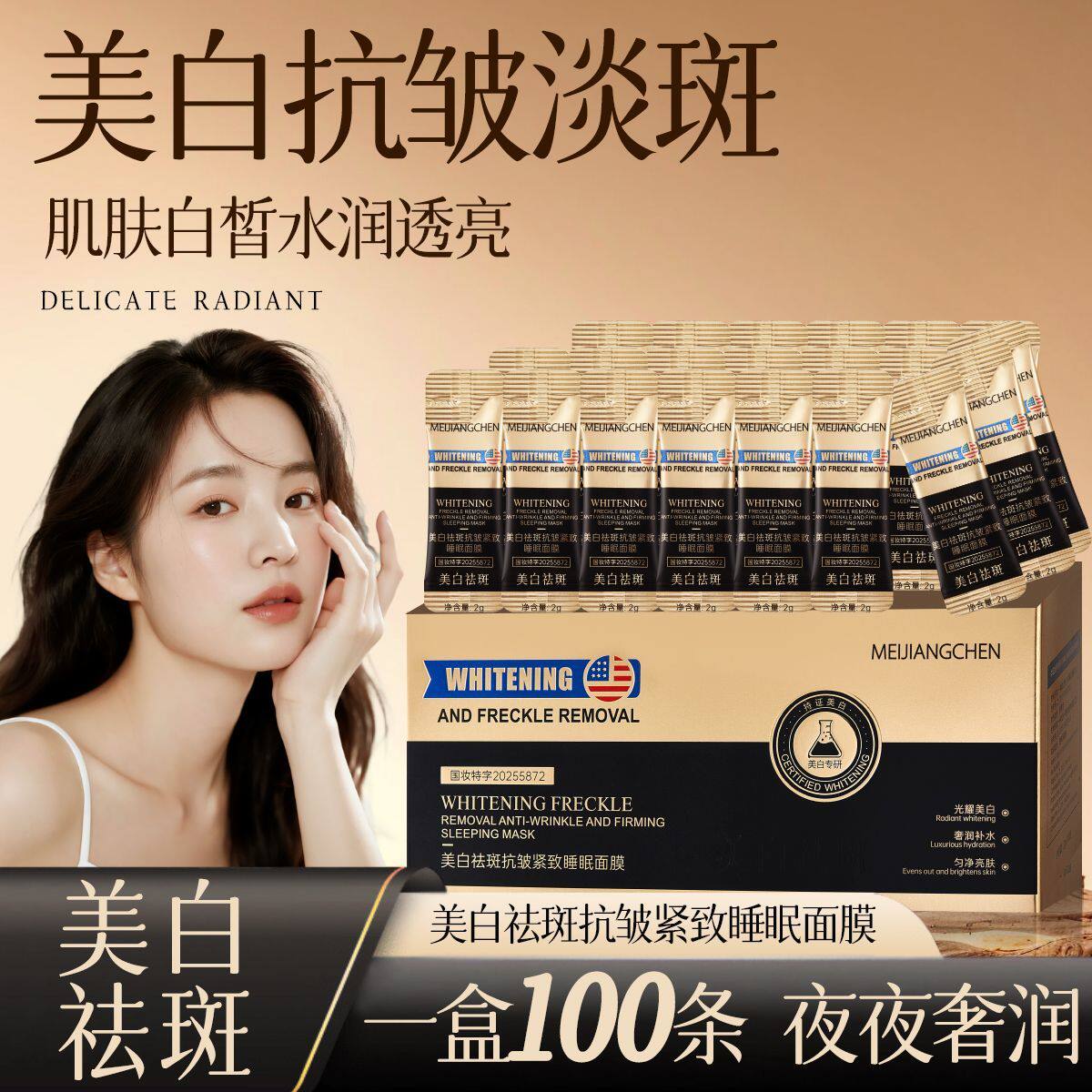 【国妆特证】美白祛斑抗皱紧致睡眠免洗面膜 补水保湿独立包装女