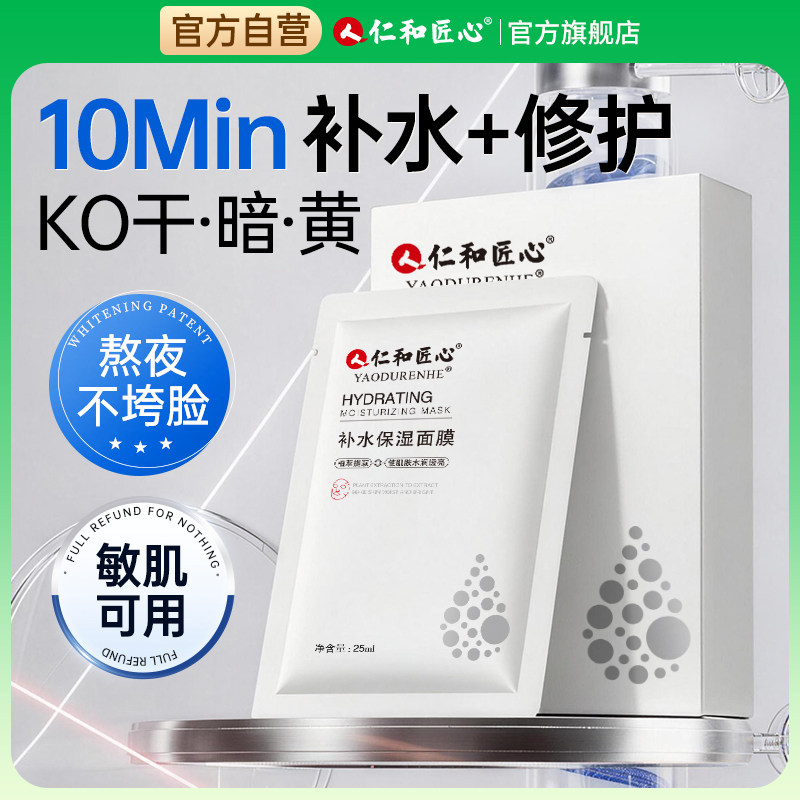 仁和匠心玻尿酸补水面膜保湿提亮肤色改善暗沉男女士专用官方正品