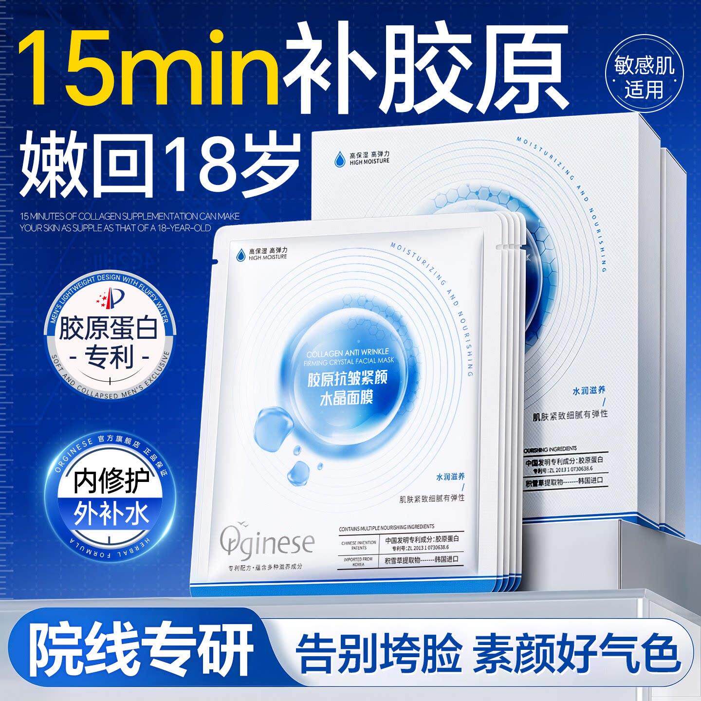胶原蛋白面膜美补水提亮修护白正品官方