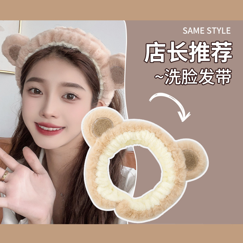 可爱兔耳发箍女敷面膜化妆洗脸压发发卡秋冬新款棉绒发箍毛绒发饰