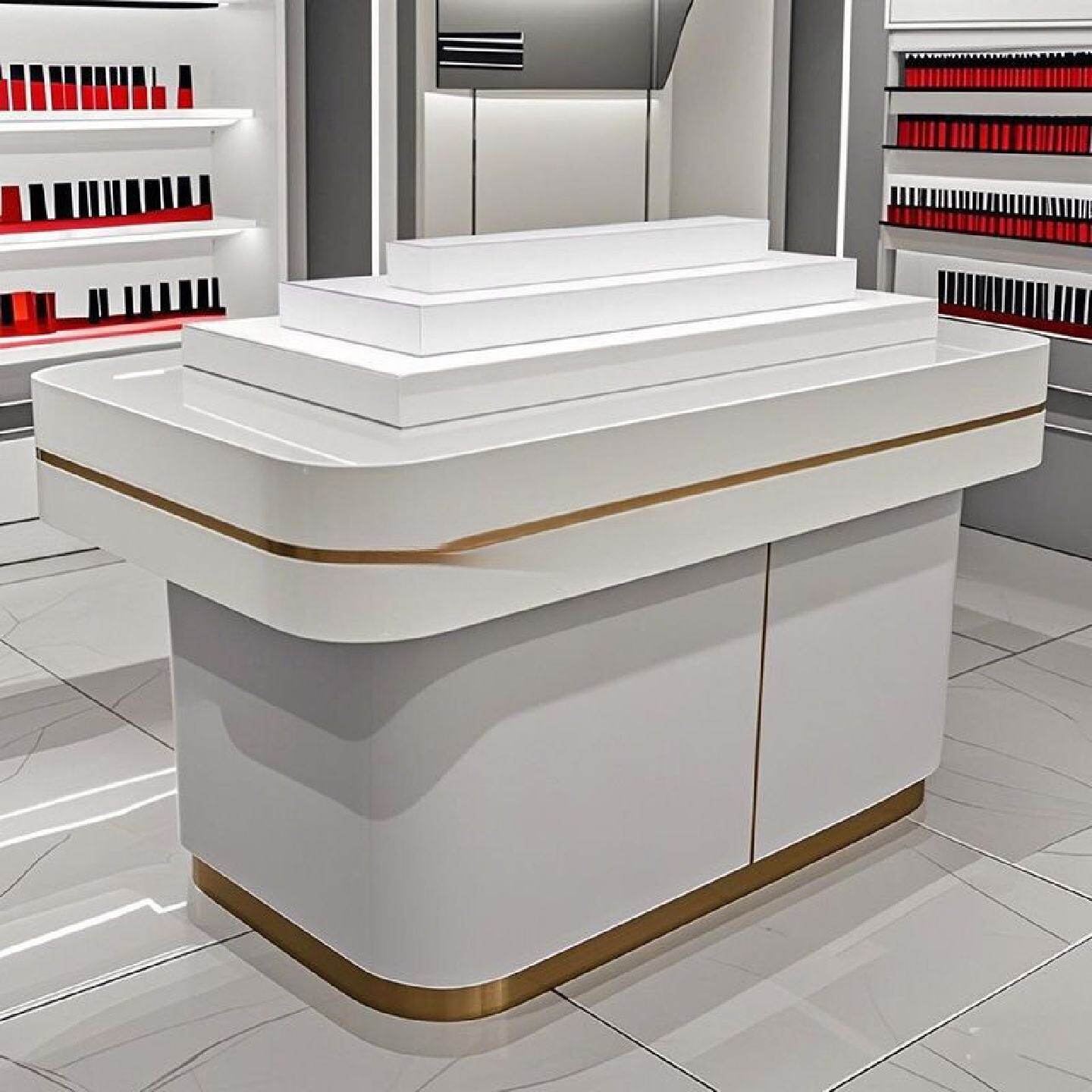 化妆品展示柜院彩妆面膜护肤品香水柜圆形中岛展示柜发光人造板