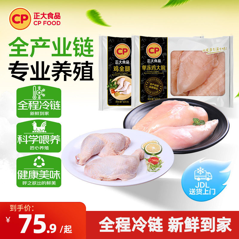 正大去皮鸡胸+鸡全腿新鲜冷冻健身鸡胸鸡腿手枪腿烧烤食材鸡大胸