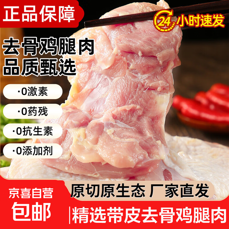 去骨鸡腿肉新鲜带皮无骨鸡腿生鲜冷冻汉堡鸡腿排鸡排鸡肉包邮净重 带皮去骨鸡腿肉 6kg(包冰率10%)