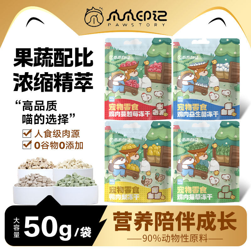 爪爪印记宠物零食 鸡肉猫草冻干蔓越莓益生菌鸭肉梨50g