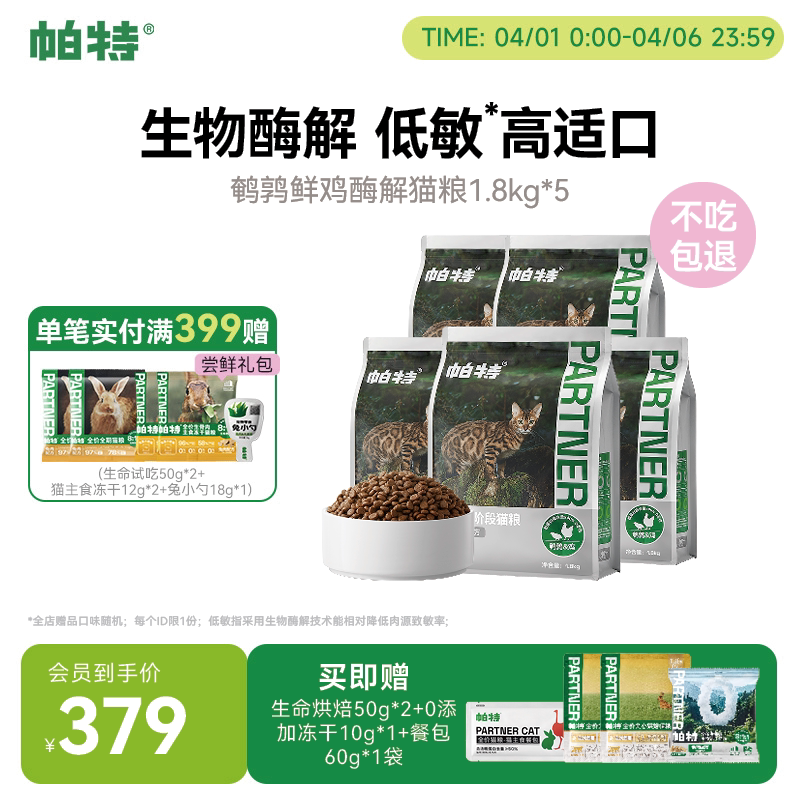 【囤货装】帕特纯粮猫粮酶解低敏适口无谷成幼猫鹌鹑鲜鸡肉配方