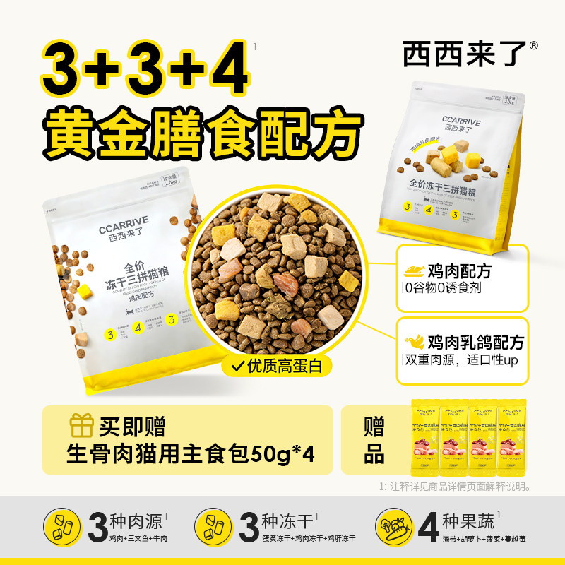西西来了全价三拼成猫粮2kg鸡肉乳鸽生骨肉蛋黄冻干旗舰店官方