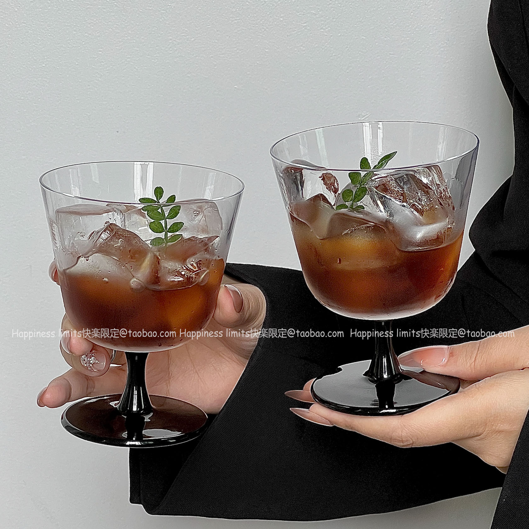 小众中古高脚阔口玻璃杯冰美式拿铁咖啡杯轻薄特调饮品杯鸡尾酒杯