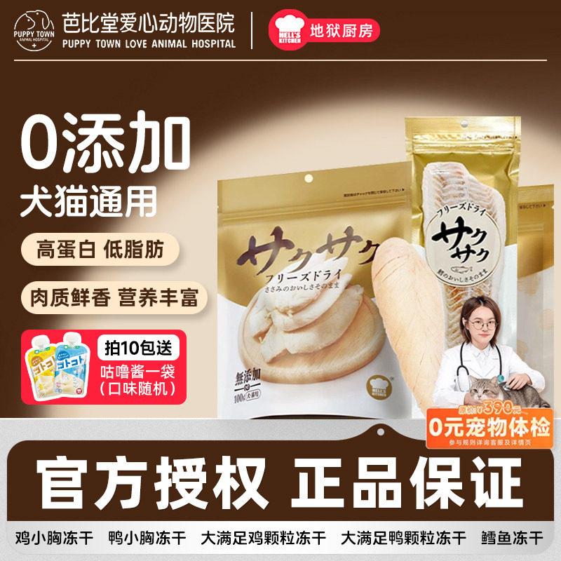 地狱厨房鸡小胸冻干鳕鱼零食鸡胸肉猫咪狗训练奖励鸡鸭肉大满足