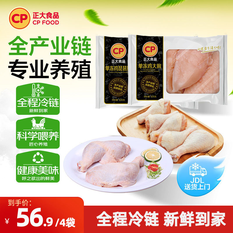 【正大官方】正大去皮鸡胸肉+琵琶腿新鲜冷冻鸡肉批发生鲜鸡肉