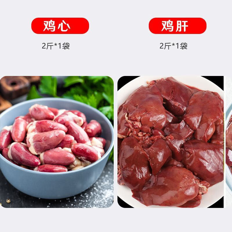 4斤鸡心新鲜生鸡心鸡内脏冷冻生鲜烤肉食材2斤鸡心串1斤食品 鸡心+鸡肝(各2斤)
