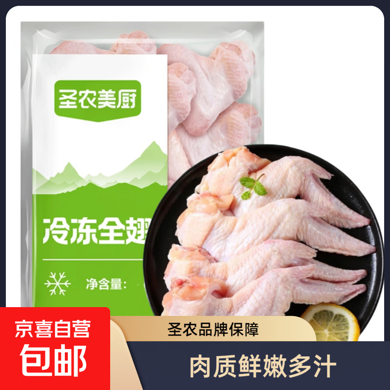 圣农美厨鸡全翅原切速冻鸡翅膀三节翅排翅烧烤卤味生鲜食材 圣农美厨鸡全翅4斤(60-80g/个)