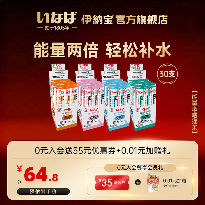伊纳宝旗舰店能量啾噜猫条补水湿粮鸡肉院线款二倍能量慕斯质地