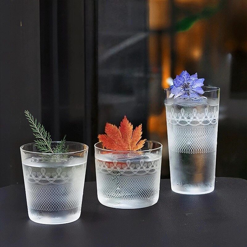 日式树皮纹玻璃杯创意鸡尾酒杯高脚杯长饮杯果汁气泡水杯冷饮料杯