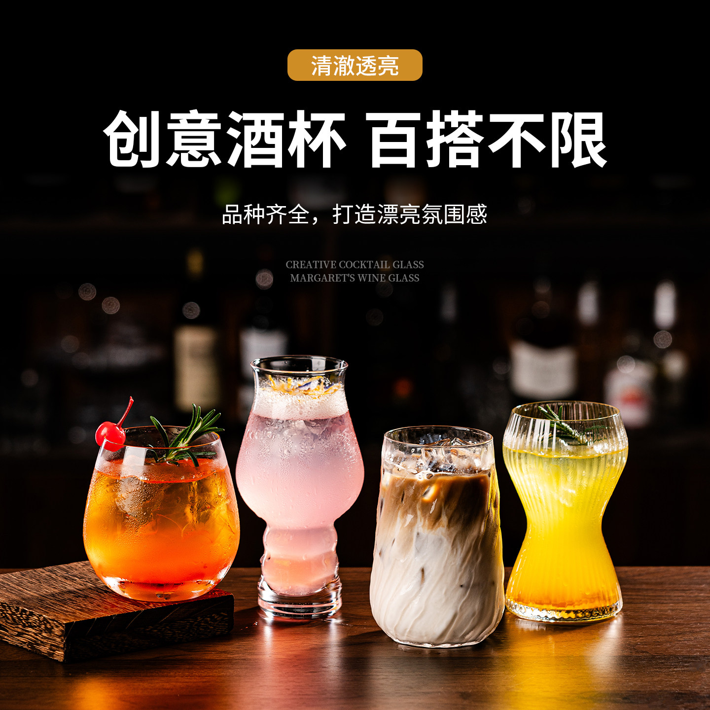 小众ins风酒吧特调鸡尾酒杯矮脚杯矩形果汁杯饮料气泡苏打水杯子