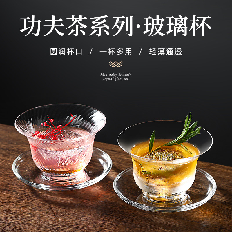 网红功夫茶鸡尾酒杯国风条纹玻璃杯带杯碟咖啡冷萃杯茶酒调酒杯子