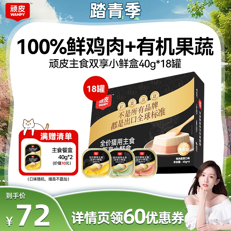 【晁然推荐】顽皮双享小鲜盒主食猫罐头鲜鸡肉40g*18罐