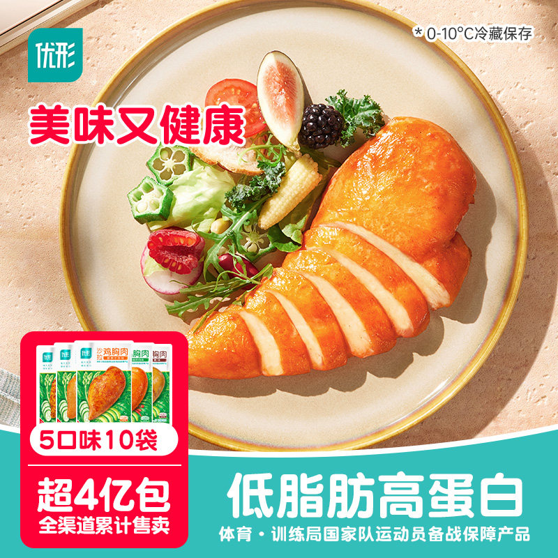 优形(ishape)沙拉鸡胸肉鸡排高蛋白低脂健身代餐开袋即食饱腹充饥鸡肉零食轻食 【店长推荐7袋5口味】共500g