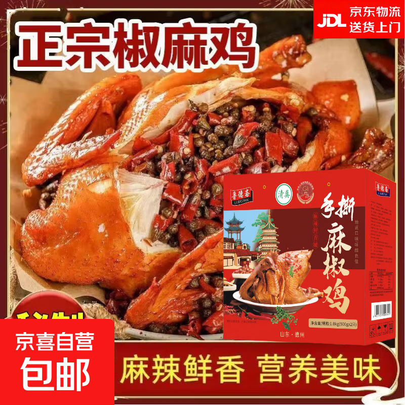 【年货节】德州特产清真手撕椒麻鸡整只熟食卤味叫花鸡年货礼盒装 【礼盒装】500g*2只/箱