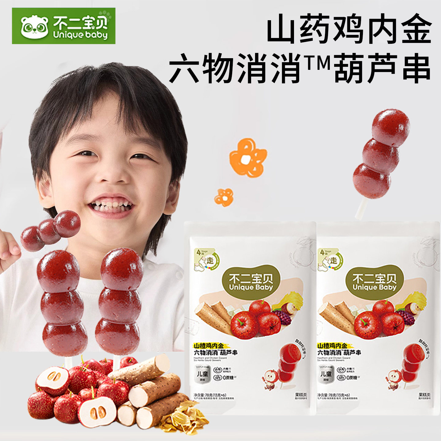 不二宝贝山楂棒牛脾肽鸡内金葫芦串山楂糖葫芦儿童营养零食果肉条