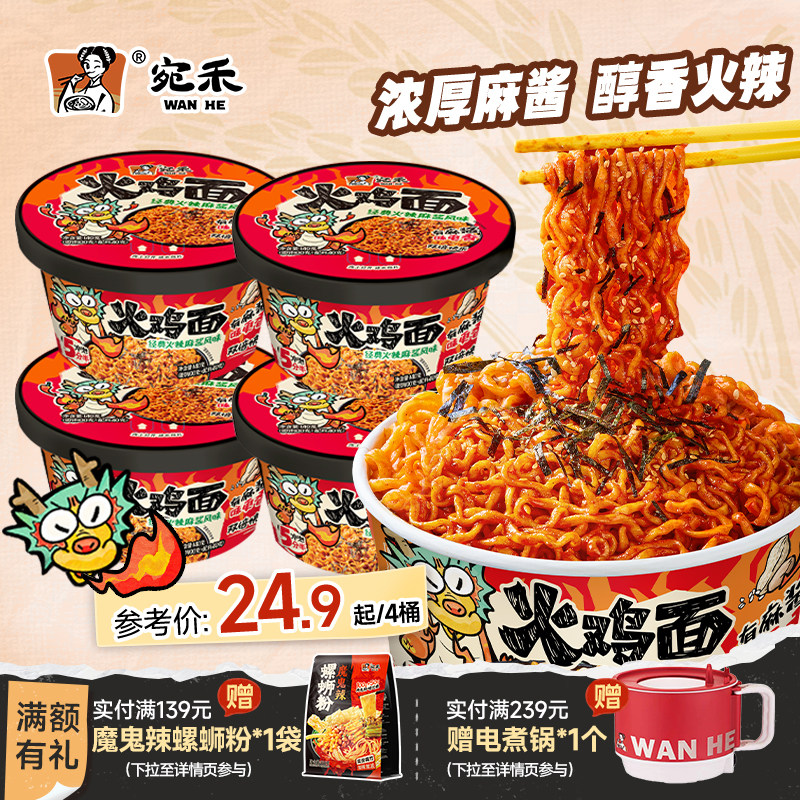 宛禾麻酱火鸡面桶装韩式泡面麻辣方便面速食拌面