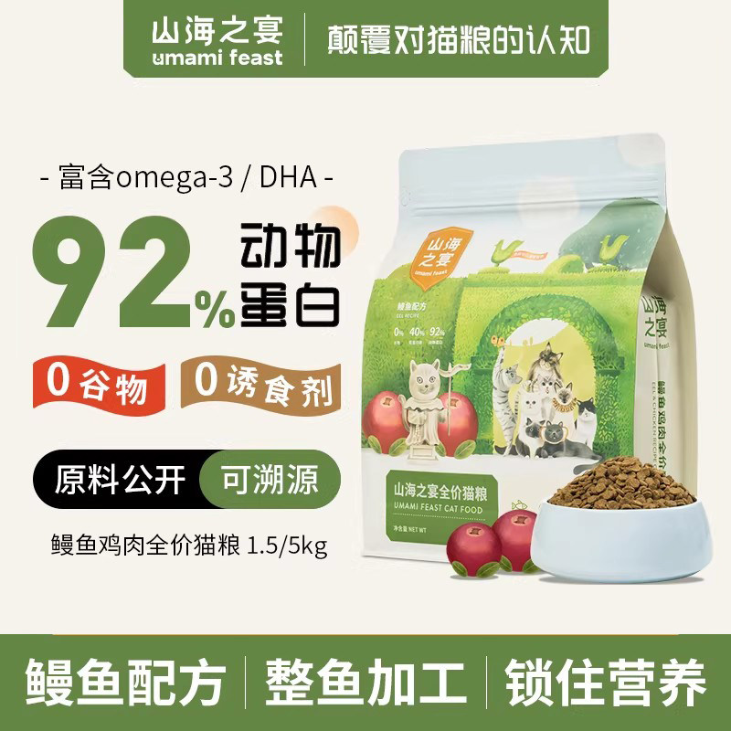 山海之宴鳗鱼鸡肉配方猫粮无谷高蛋白幼猫成猫通用全猫粮10斤装