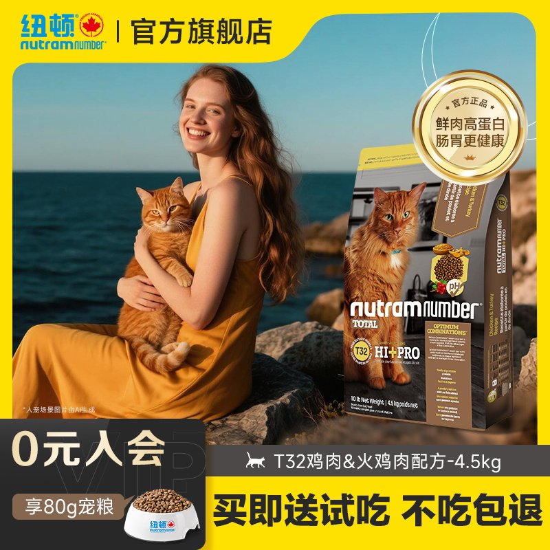 纽顿官方旗舰店美国进口T32鸡肉高蛋白成猫幼猫通用无谷猫粮4.5kg
