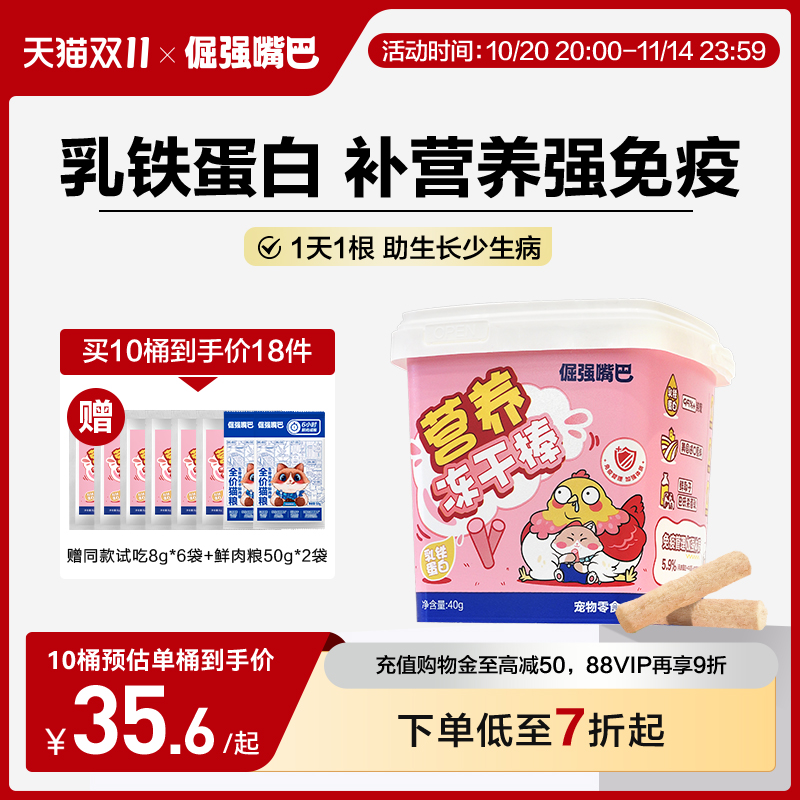 倔强嘴巴宠物猫咪乳铁蛋白营养冻干棒鸡肉冻干奶棒磨牙成幼猫通用
