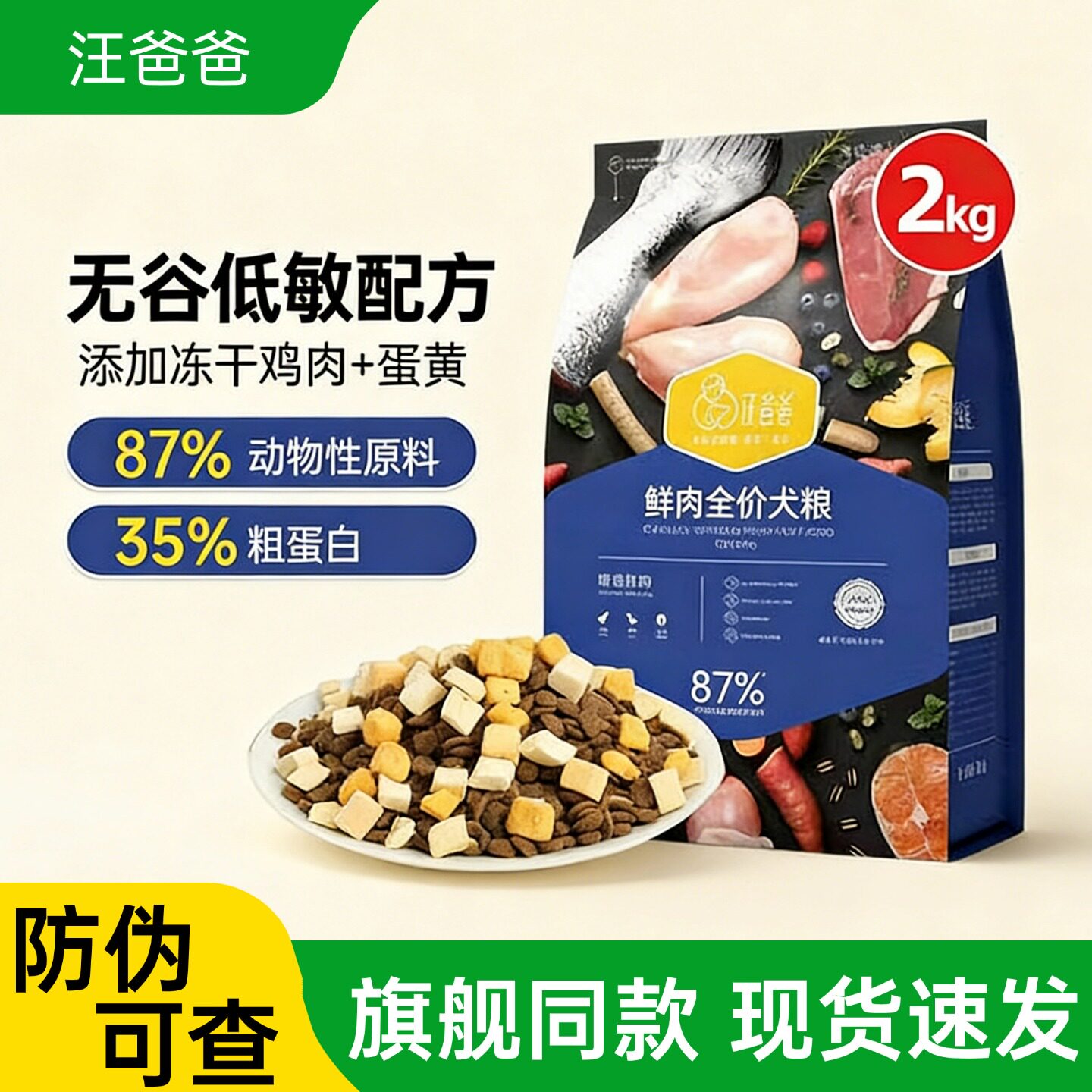 汪爸爸狗粮全价鲜肉无谷成犬幼犬冻干鸡肉蛋黄全价通用粮2kg