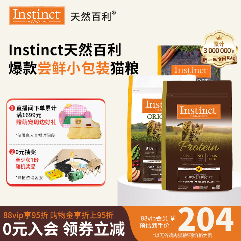 【官方旗舰店】Instinct天然百利美国进口高蛋白无谷鸡幼猫粮小包