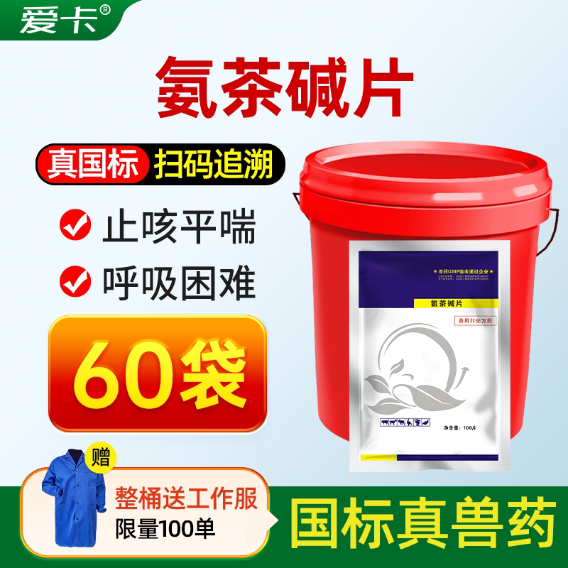 氨茶碱片兽药兽用鸡鸭鹅猪用止咳平喘咳嗽哮喘支气管炎呼吸困难