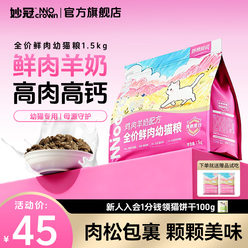 妙冠鲜肉羊奶鸡肉肉松夹心幼猫无谷营养猫粮1.5kg
