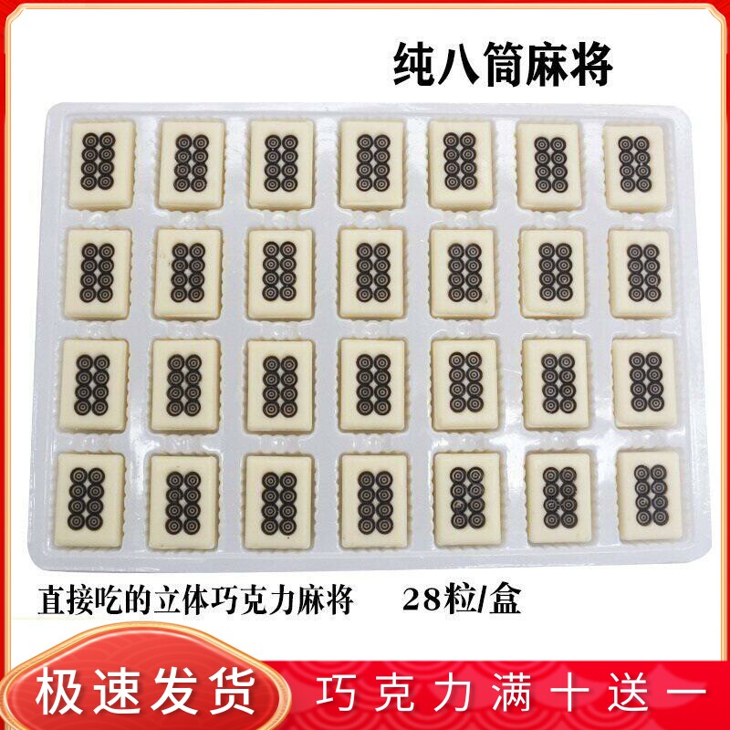 蛋糕装饰巧克力可食用红中发财八筒幺鸡仿真立体麻将插片烘焙配件