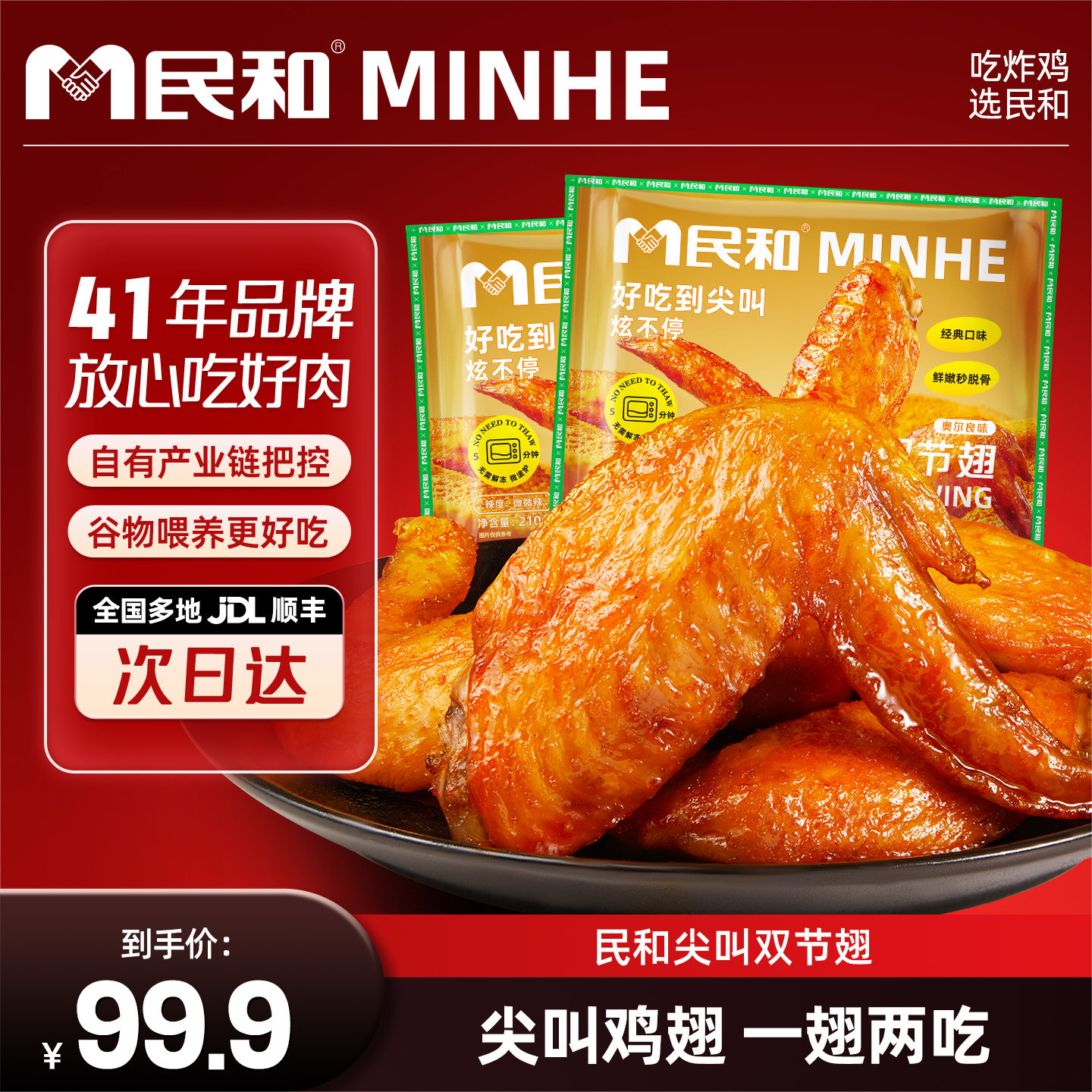 【直播专享】民和尖叫鸡翅翅根烤翅空气炸锅半成品冷冻食材BD