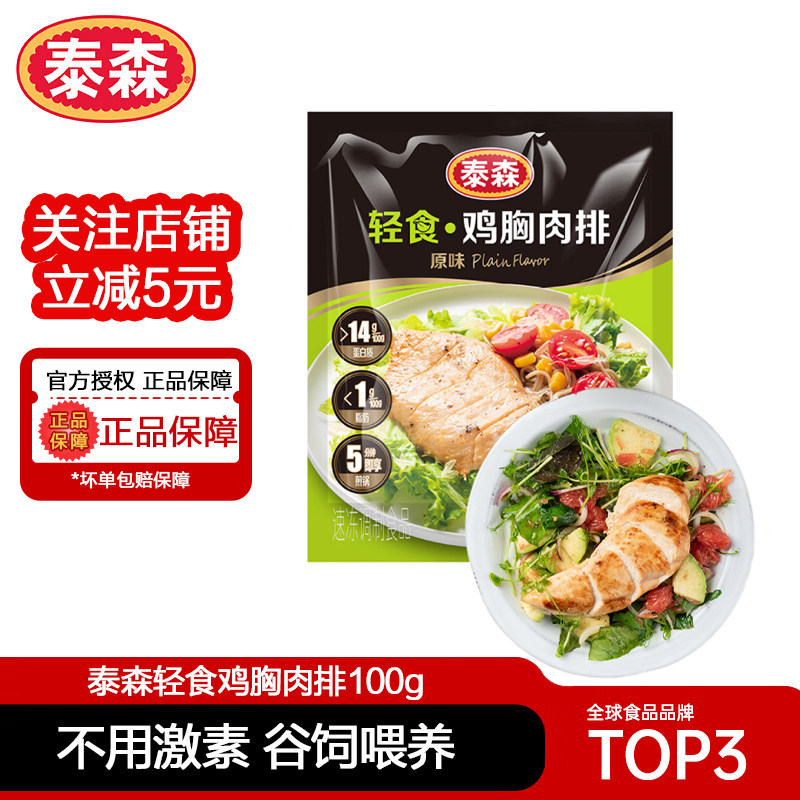 泰森轻食鸡胸肉排100g*10健身代餐无激素鸡胸肉开袋加热即食鸡肉