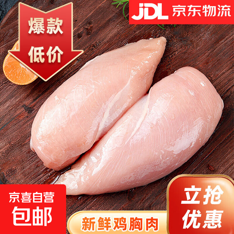 新鲜鸡小胸低脂无添加冷冻清真鸡脯肉健身代餐【顺丰京东包邮】