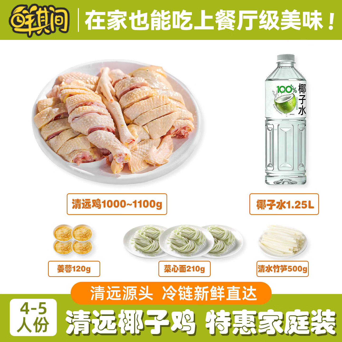 鲜其间【清远椰子鸡】180天5人份椰子鸡配料火锅套餐 正宗清远鸡走地鸡 【4-5人份】原味清远椰子鸡套餐5.8斤 椰子鸡火锅套餐 含清远鸡+椰子水+蘸料+配菜