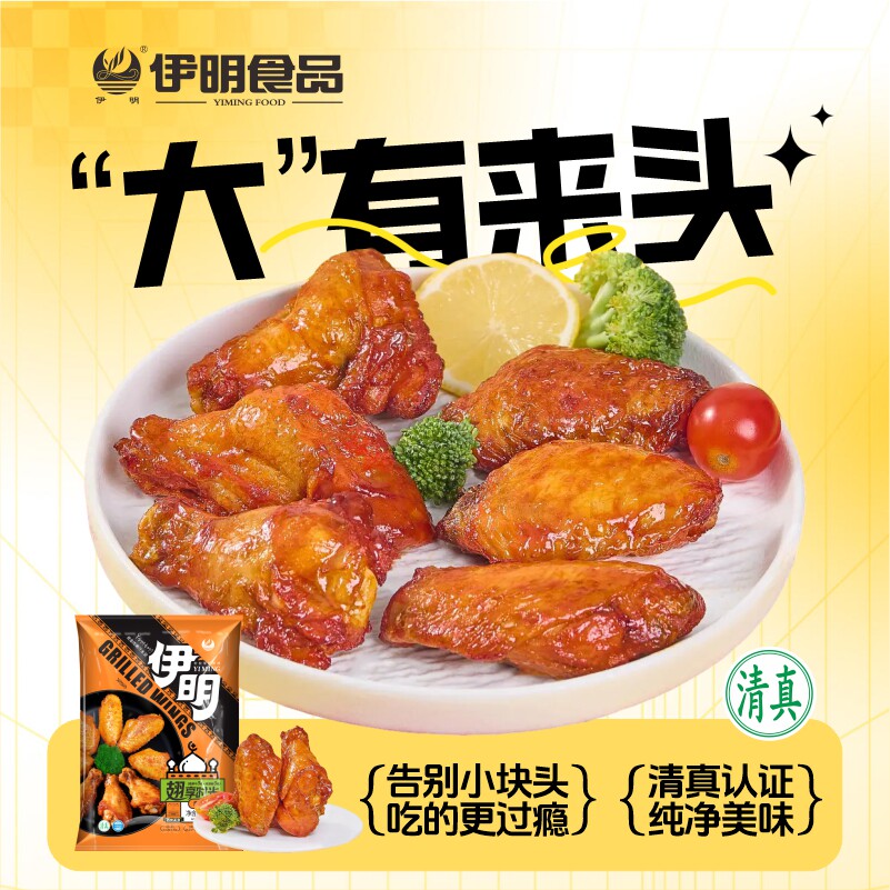 伊明清真食品烤翅鸡翅中280g*5袋冷冻奥尔良翅根半成品空气炸锅