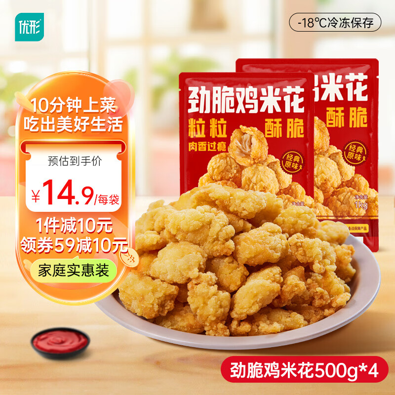 凤祥食品优形乐享鸡块劲脆脆鸡米花半成品空气炸锅食材炸食小吃品休闲零食 优形劲脆鸡米花500g*4袋