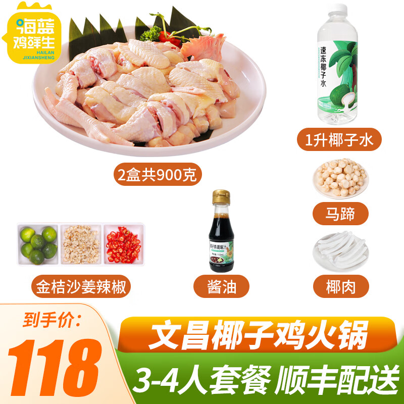 海蓝鸡鲜生 海南文昌椰子鸡火锅套餐无抗地标食材140天农家散养土鸡生鲜鸡肉 【文昌鸡1.8斤+椰汁水1升】4人份