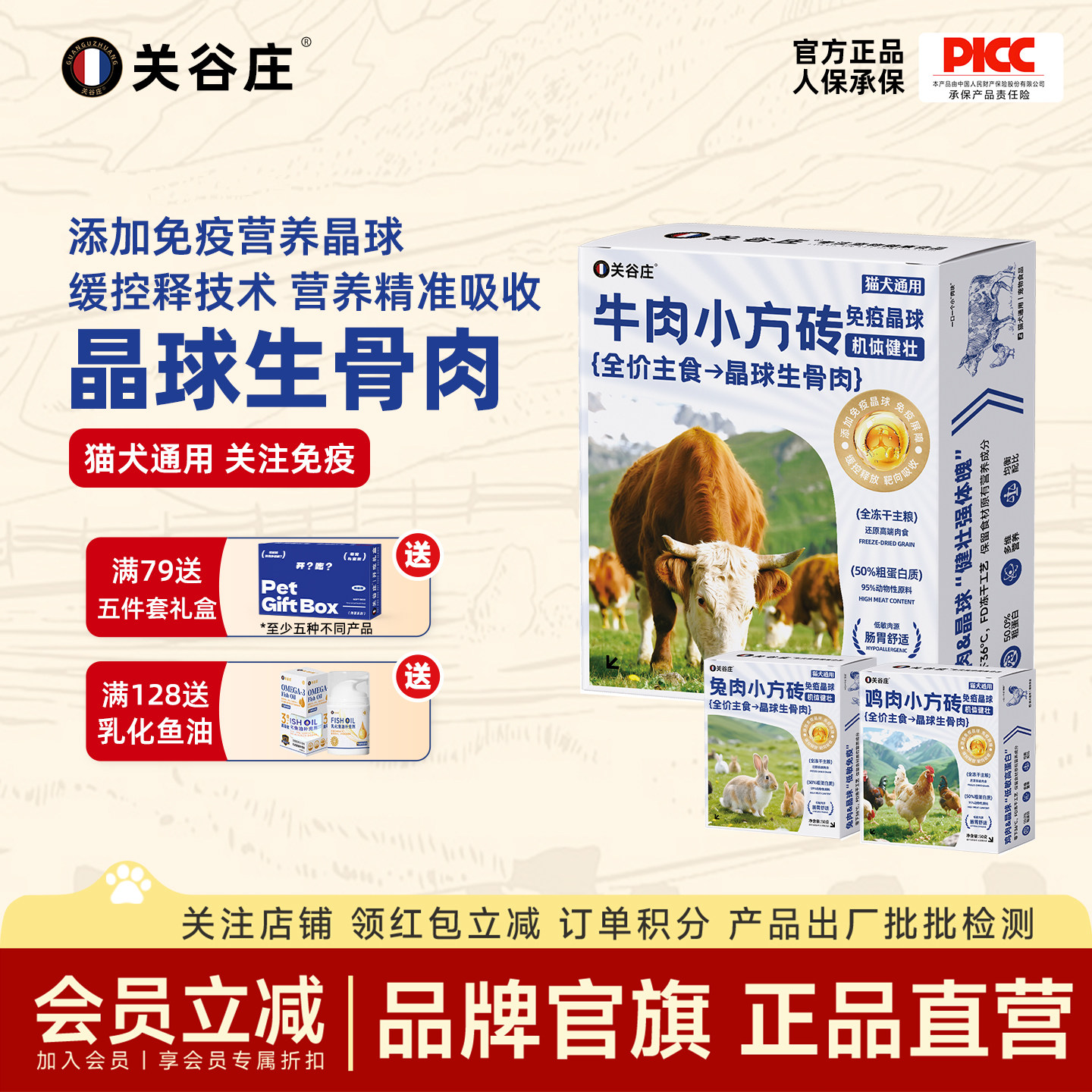关谷庄免疫晶球全价主食生骨肉冻干猫犬通用主粮兔肉鸡肉牛肉50g